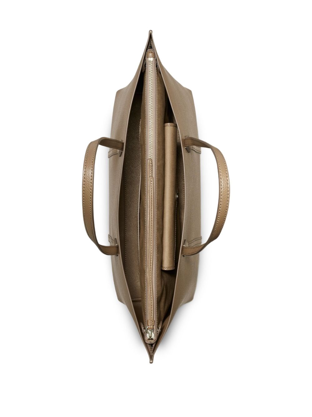 brown dual top handles embossed logo detail open-top design structured silhouette Perry medium leather tote Size and Fit - DEPTH: 13.0 Centimetres. HANDLE: 26.0 Centimetres. HEIGHT: 28.0 Centimetres. WIDTH: 37.8 Centimetres.