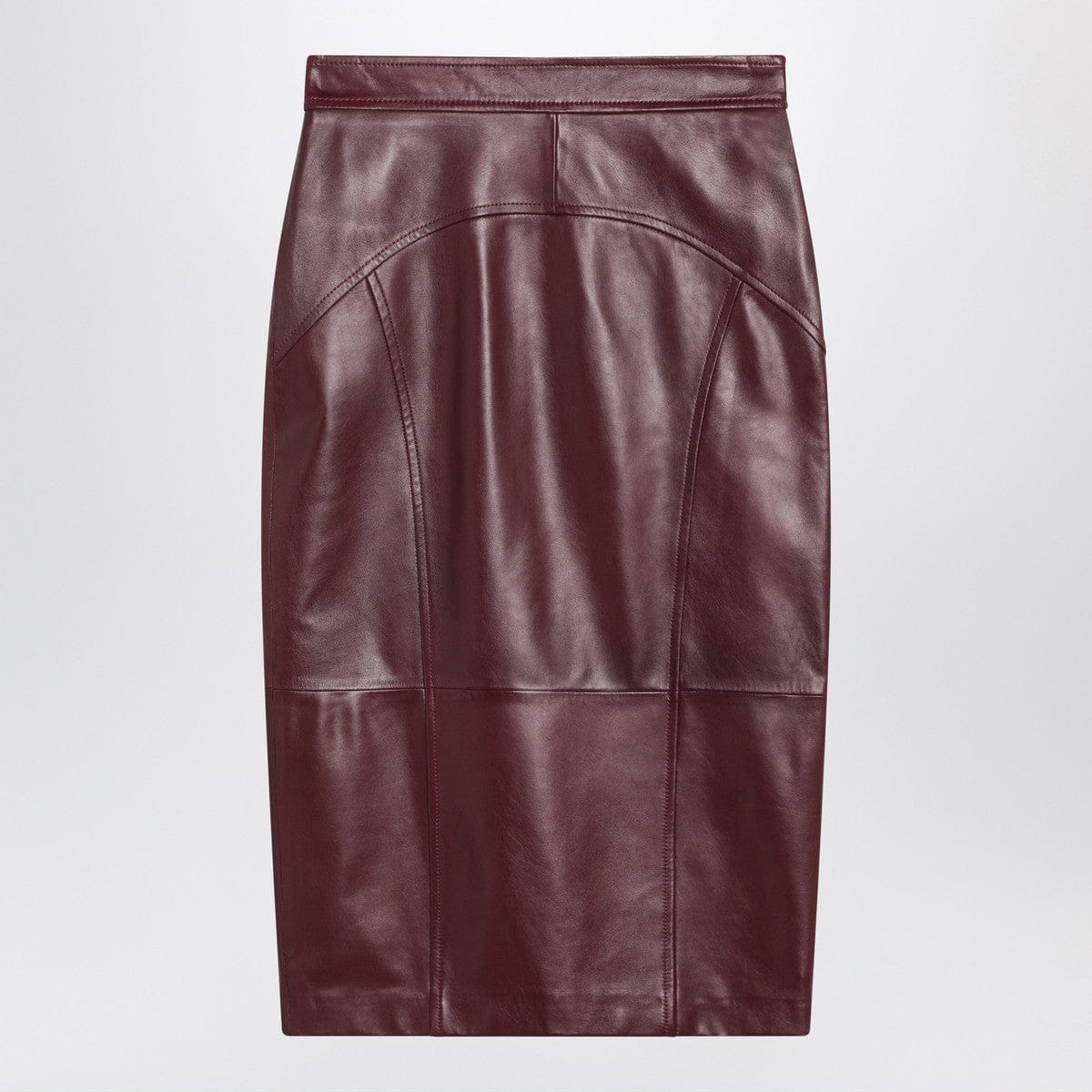 Bordeaux leather pencil skirt from Max Mara Studio featuring vertical and vaulted topstitching, a high waist, a latereal zip fastening, a fitted silhouette and a central back slit.