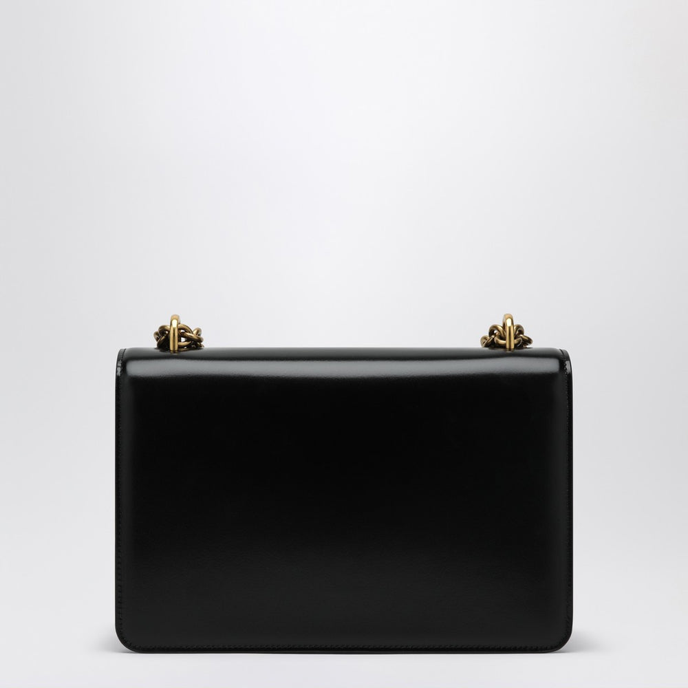Shoulder bag Valentino Garavani Vain in shiny black calfskin, characterized by a gold metal chain shoulder strap, magnetic closure with VLogo antique brass finish, two compartments and a zippered slip pocket.